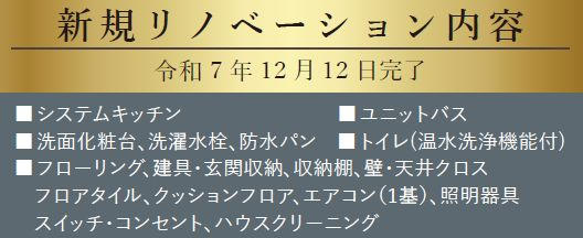 | コメント/周辺施設 | ★15階建て2階部分 3方角部屋 南・北2面南向きバルコニー 2025年12月中旬リフォーム完成★ ※2025年10月現在、大規模修繕工事のスケジュールについて協議中。工事完了後に修繕積立金の改定について協議される可能性があります) |