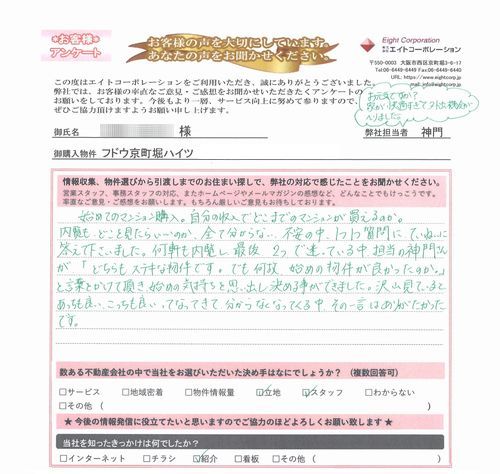 249frank43 様 フドウ京町堀ハイツ 担当:神門